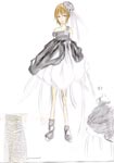 軽さときれいなシルエットを表現すれば良い作品が出来ると思います。 ビニールという素材はペチコートっぽく作ることができるとおもうので、デザイン画のピュアな雰囲気を生かして、再現してください。